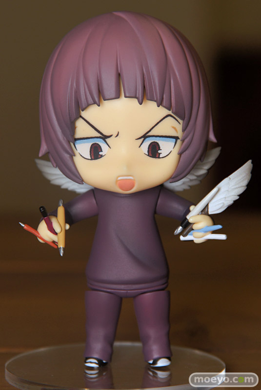 ファット・カンパニー「ねんどろいど バクマン。 新妻エイジ」のサンプルレビューです。『劇中でエイジが見せる印象的な動きが再現できるオプションパーツをご用意』ということで、6種の執筆道具を両手に持った姿等が再現可能です。