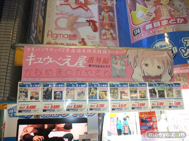 店頭で巨大なまどかPOPも展開しているアキバ☆ソフマップ2号店店頭では、「最終話まで魔法少女にならない魔法少女 鹿目まどかちゃんが遂にグッドスマイルカンパニーさんより発売」と書かれた「キュゥべえ屋番外編 かなめまどかやさん」のPOPを掲示