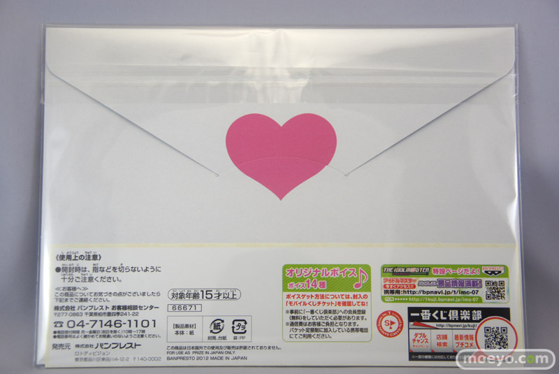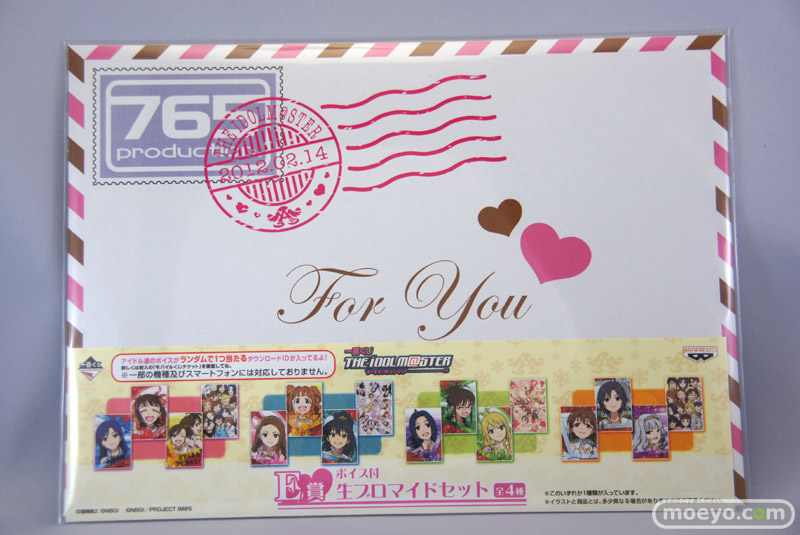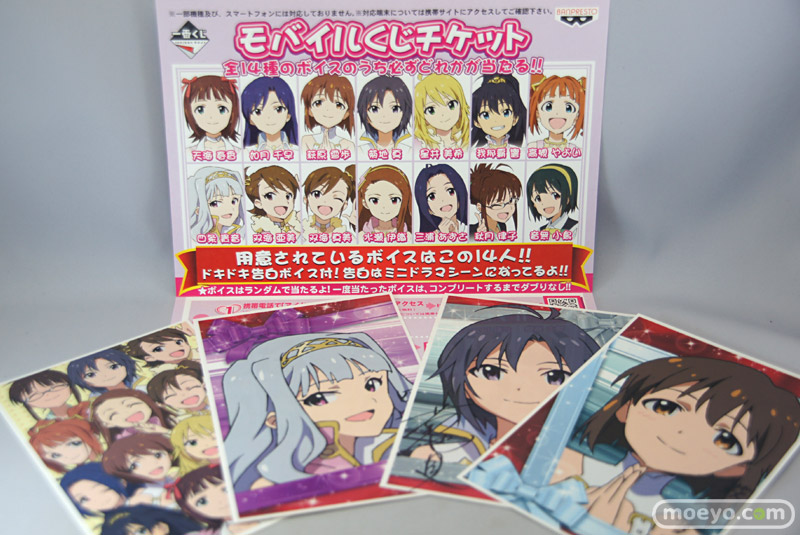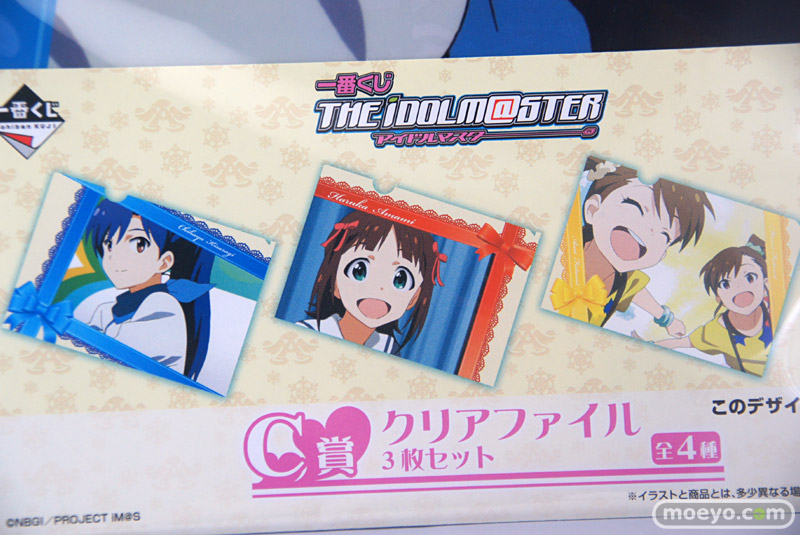 1月15日に、ライブ会場にて限定数先行販売もあった、バンプレスト「一番くじ アイドルマスター」のサンプルを見せて頂けました。今回は1回500円(税込)で、5等級14種+ラストワン賞あり。一般発売は今月2012年1月予定です。