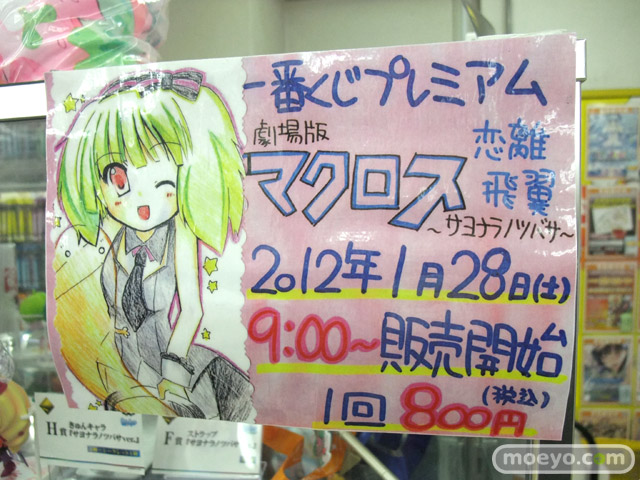 ■ 商品名:「一番くじプレミアム 劇場版マクロスF~サヨナラノツバサ~」 ■ 発売元:バンプレスト ■ 仕様:空くじ無しのくじ引き ■ 価格:1回 税込800円 ■ 発売:2012年1月 ■ 取扱店:ファミリーマート・ホビー店・ナムコ等 |