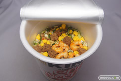 また、具材にもこだわり、大きめサイズのエビと、大型のダイスミンチを使用し、大盛りカテゴリーのメインユーザーである10代~30代の男性が強いインパクトを感じられる商品に仕上げました。