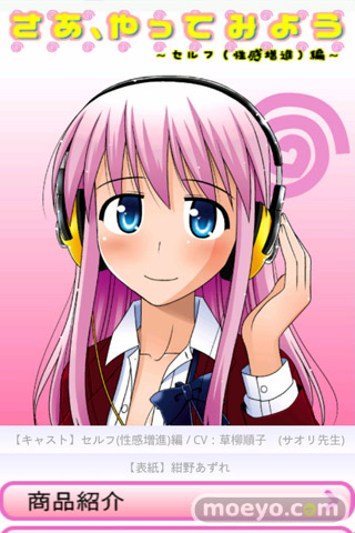 ■ アプリ名: 『さあ、やってみようCV 草柳順子』(音声版) 『さあ、やってみようCV 金田まひる』(音声版) 『さあ、やってみようCV 民安ともえ』(音声版) 『さあ、やってみよう~催眠オナニー入門~』(電子書籍版) ■ 対応端末:Android ■ 価格: 『さあ、やってみようCV 草柳順子』 250円 『さあ、やってみようCV 金田まひる』 250円 『さあ、やってみようCV 民安ともえ』 250円 電子書籍版『さあ、やってみよう~催眠オナニー入門~』 350円 ■ サービス開始日:2012年2月3日(金) |