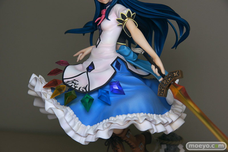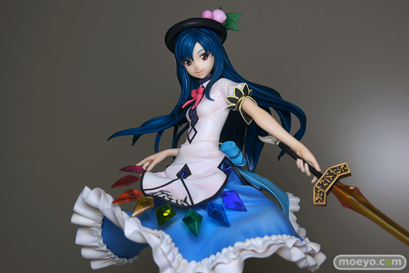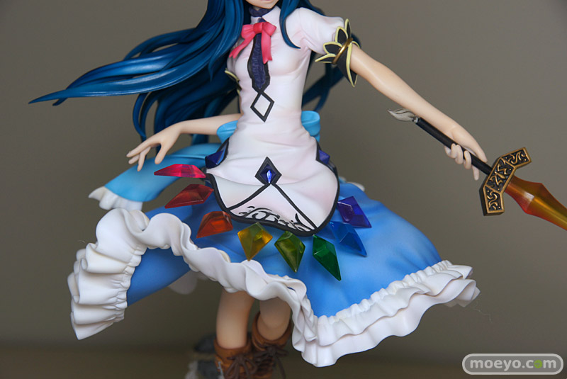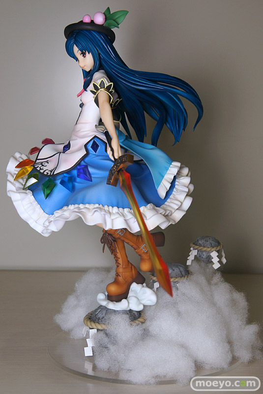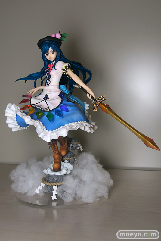 特徴的な衣装や風になびく髪も非常に細かな造り込みで、見ごたえもバッチリ。作中での印象的なアイテム「緋想の剣」や「要石」なども巧みに表現され、天子の魅力とその世界観が余すところなく凝縮されたフィギュアとなっています!