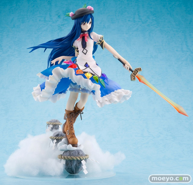 要石の上を歩く威風堂々とした姿で立体化。ブラウスの裾に輝く虹色の飾りやキーアイテム「緋想の剣」は、クリアーパーツで成型予定。雲をイメージしている綿も付属予定。