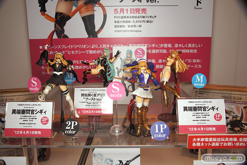 「ワンダーフェスティバル 2012[冬]」の「海洋堂」「ホビーストック」のブースで、リボルテック クイーンズブレイドシリーズの新作「シギィ」「アリス ブーストVer.」の彩色サンプルが展示。どちらのパンツも外せそうでした。