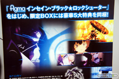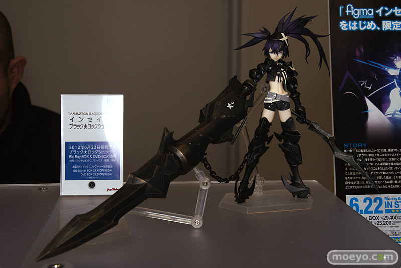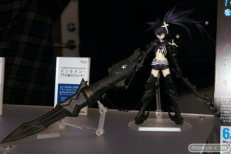 「2012冬 ホビーメーカー合同商品展示会」の会場で、Blu-ray/DVD「ブラック★ロックシューター 限定版」付属の「figma インセイン・ブラック★ロックシューター」の彩色サンプルが展示。超巨大な武器「インセイン・カノンランス」が大迫力。