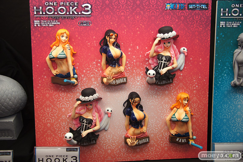 「ワンダーフェスティバル 2012[冬]」の会場で、千値練「ONE PIECE H.O.O.K.3」の彩色サンプルが展示。「ナミ」「ニコ・ロビン」「ペローナ」の3種×2の計6種で、今までのシリーズ同様ナイスおっぱいとなっています。