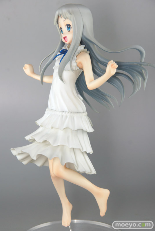 千値練「あの日見た花の名前を僕達はまだ知らない。 めんま(本間芽衣子)」のサンプルレビューです。『飛び跳ねて流れる綺麗な長い銀髪とフワリと膨らんだワンピースからのぞく手足』という、元気いっぱいな姿で立体化したものです。