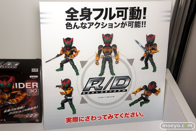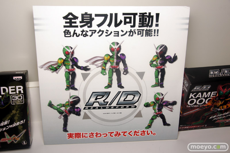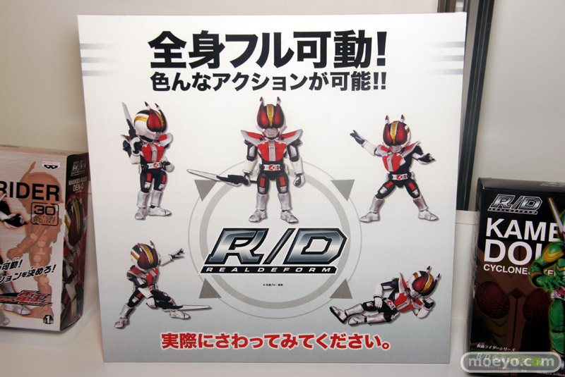「デフォルメ博」の会場で、フル可動の新フィギュアシリーズ「R/D リアルデフォーム(REALDEFORM)」が公開。第1弾?となる、13種の「仮面ライダー」のサンプルが一挙に展示。触れるサンプルもあり、可動範囲を確かめることも。
