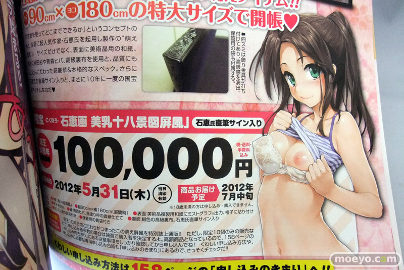「電撃萌王」10周年記念の増刊「電撃おとなの萌王 Vol.01」が発売。表紙を開けるといきなり乳首で、そのほかも乳首丸出しおっぱい・ぱんつ・おしり等のイラストがいっぱい。石恵氏描く10名限定、10万円の「萌え屏風」受注も。