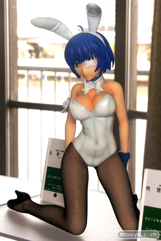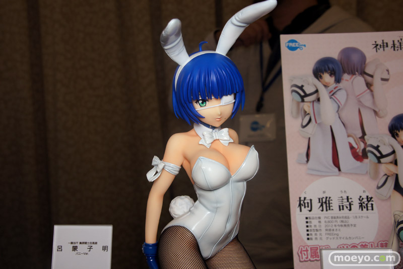 「宮沢模型新作展示会2012春」の会場で、FREEing「一騎当千 集鍔闘士血風録 呂蒙子明 バニーVer.」の彩色サンプルが展示。ぴっちりした白いバニースーツに身を包んでお尻突き出したかのようなポーズが、とってもセクシーです。