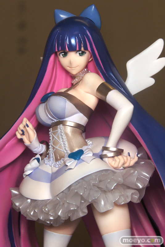 愛らしい元デザインを継承しつつも、頭身が高い肉感的プロポーションにアレンジされた作画のイメージを忠実に再現。ストッキングの特徴的なシルエットを形作るロングヘアーは、外側がブルーで内側がピンクというエキセントリックなカラーリングに、躍動的な造型が目を惹きます。