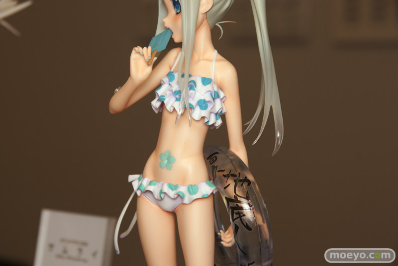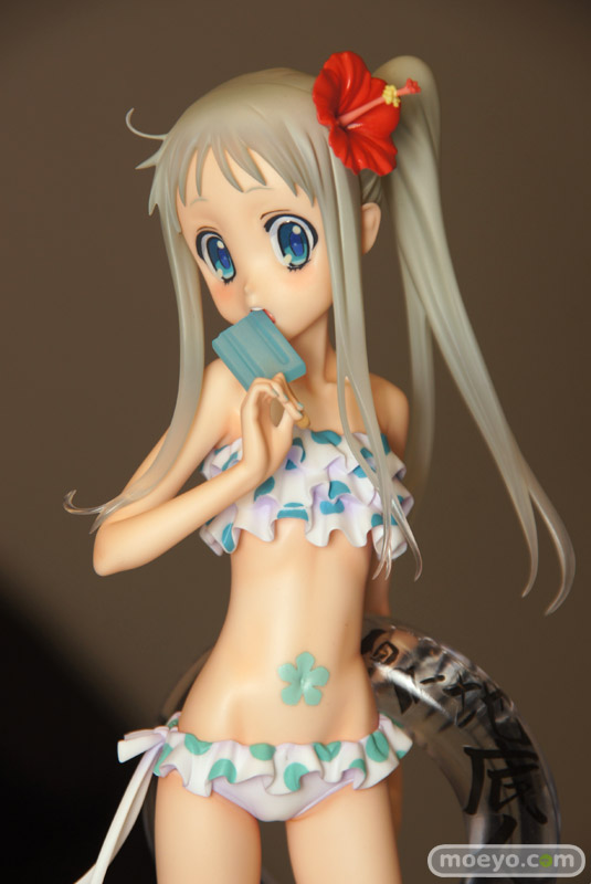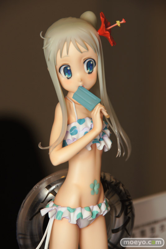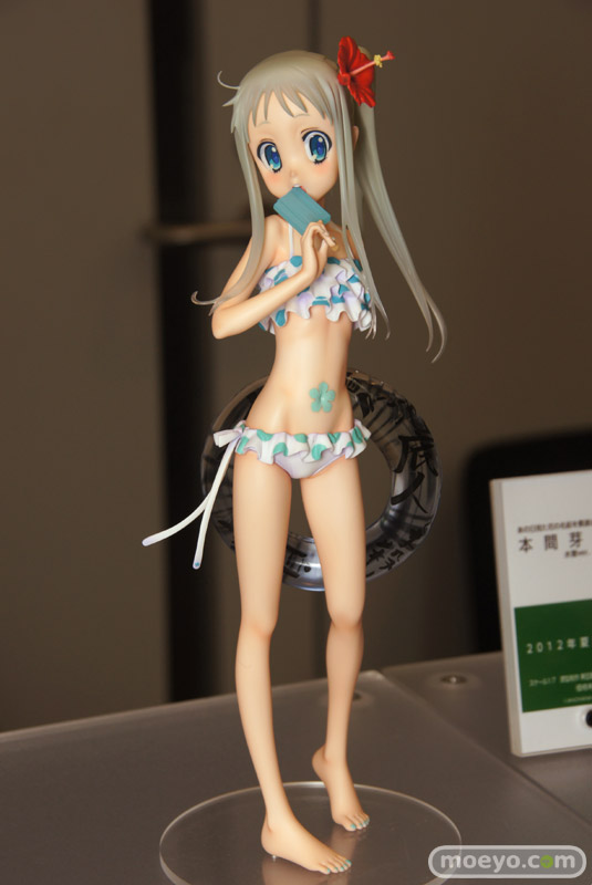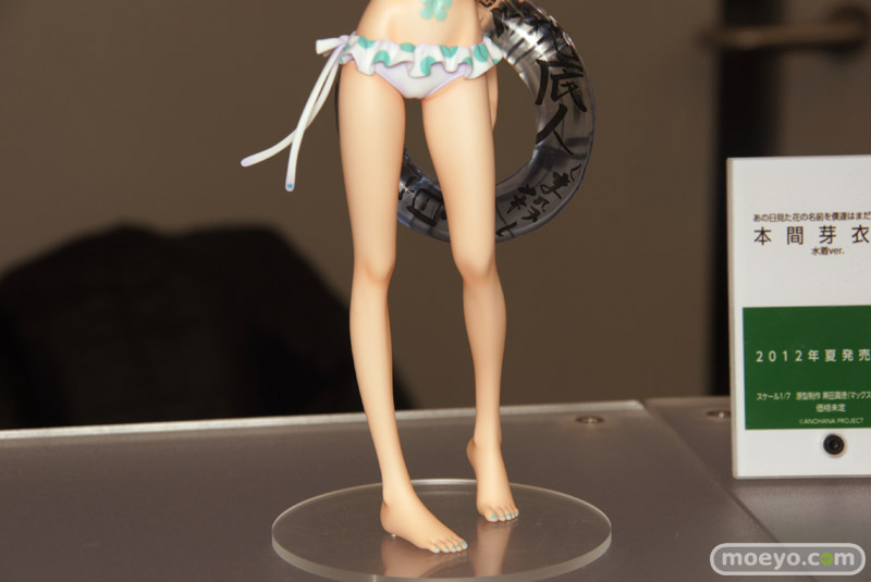「2012冬 ホビーメーカー合同商品展示会」の会場で、マックスファクトリー「あの花 本間芽衣子」の彩色サンプルが展示。可愛らしく立体化されるものが多い中、スレンダーなボディラインをセクシーに再現した水着姿となっています。