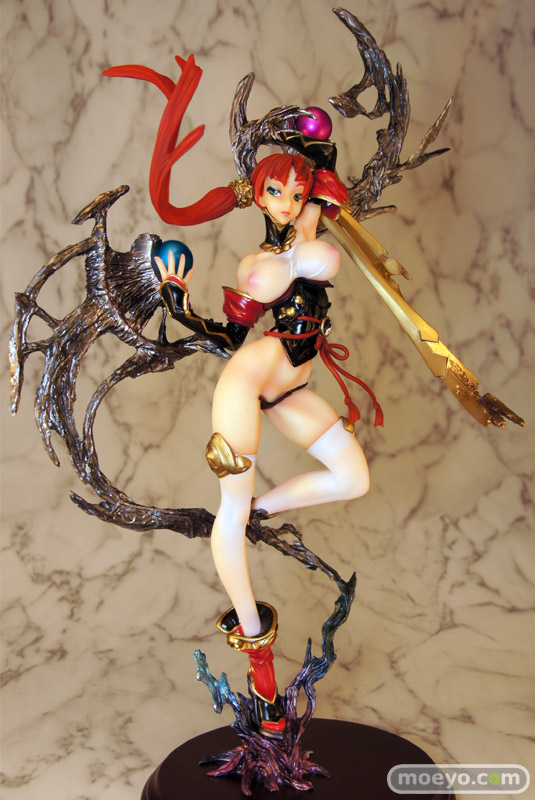 Q-six「SHING 風切の斬 -弐之形-(通常版)」のサンプルレビューです。原型師の白髪隆之氏のオリジナルシリーズのキャラで、氏のダイナミックなエロかっこいい造形が際立っています。乳は、透け乳とモロ乳の2種が付属。