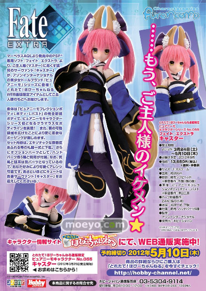 マーベラスAQLより発売中のPSP(R)専用ソフト『フェイト/エクストラ』より、ご主人様(マスター)に尽くす狐耳のサーヴァント「キャスター」が、アゾンインターナショナルの美少女ドールブランド「ピュアニーモ」シリーズに登場します。