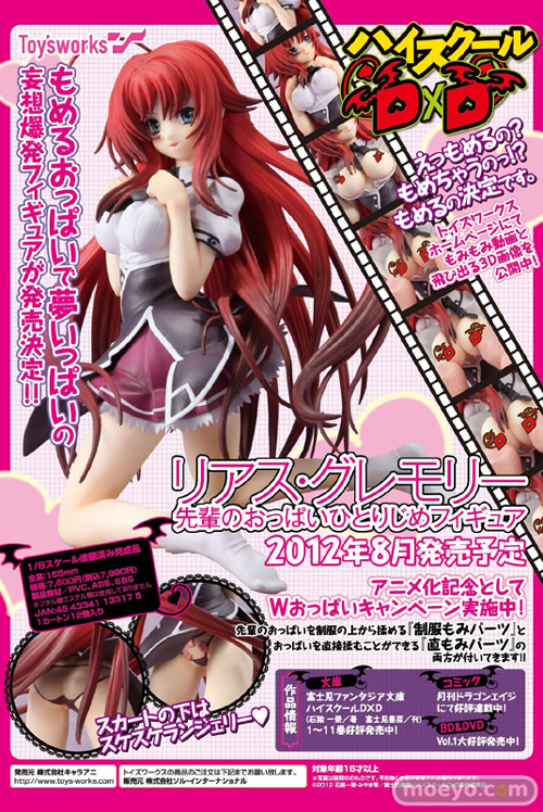 株式会社キャラアニは2012年8月上旬に「1/8スケール塗装済み完成品フィギュアハイスクールD×D リアス・グレモリー 先輩のおっぱいひとりじめフィギュア」を発売します。