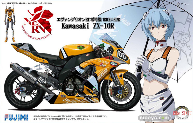 ■ 商品名:「エヴァンゲリオンRT零号機 TRICK☆STAR Kawasaki ZX-10R 2010年仕様」 ■ 発売元:フジミ模型株式会社 ■ 仕様:未塗装組み立て式プラモデルキット ■ サイズ:1/12スケール ■ 価格:税込5,250円 ■ 発売:2012年6月 |
