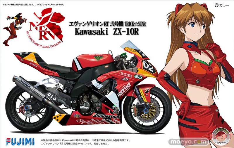 ■ 商品名:「エヴァンゲリオンRT弐号機 TRICK☆STAR Kawasaki ZX-10R 2010年仕様」 ■ 発売元:フジミ模型株式会社 ■ 仕様:レジン製塗装済み完成品 ■ サイズ:1/12スケール ■ 価格:税込26,250円 ■ 発売:2012年8月 |