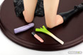 カーディガンの袖から出た御手に極太バイブ&長ネギが