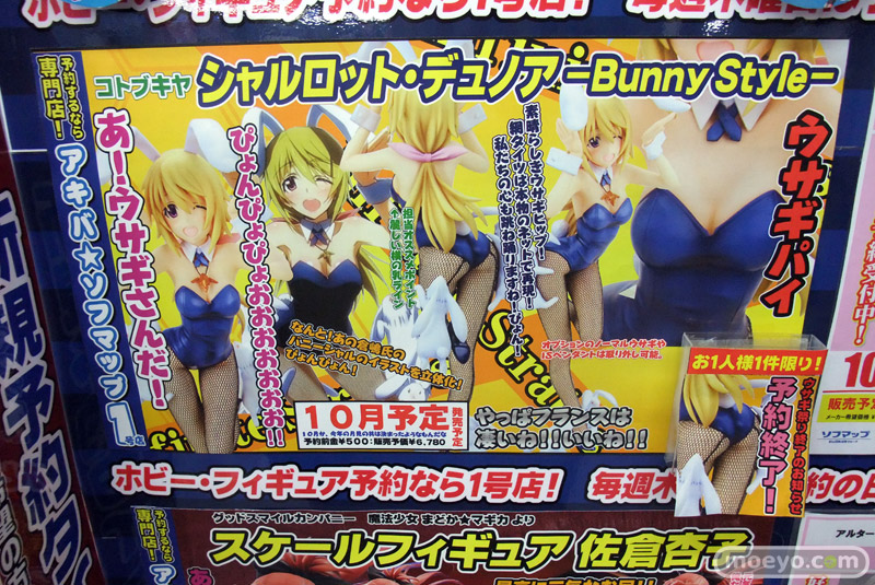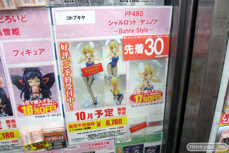 先日予約が開始され、ネットでは即日ほぼ完売状態となった、コトブキヤ「IS シャルロット・デュノア ‐Bunny Style‐」の予約受付が、アキバでも開始していましたが、ネット同様ほとんどの店舗で即終了状態でした。