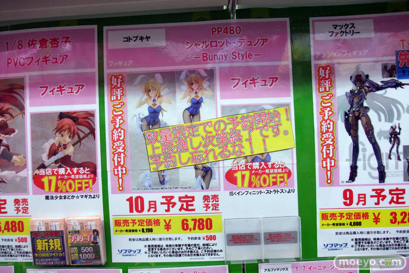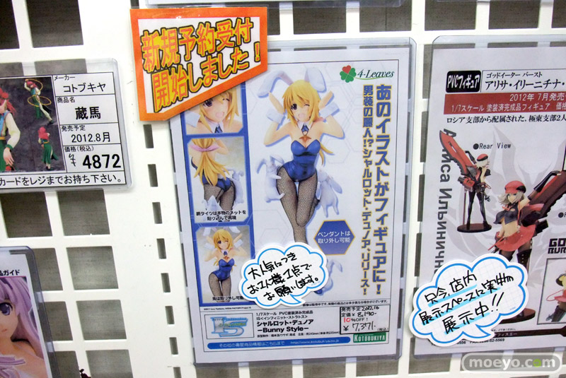 先日予約が開始され、ネットでは即日ほぼ完売状態となった、コトブキヤ「IS シャルロット・デュノア ‐Bunny Style‐」の予約受付が、アキバでも開始。ネット同様ほとんどの店舗で即終了となっていますが、コトブキヤ秋葉原館ではまだ予約可能。
