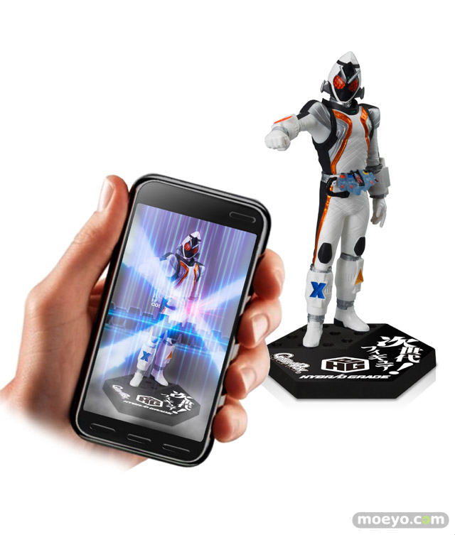 第1弾「HYBRID GRADE 仮面ライダー01」の発売に合わせて、iPhone、Android対応端末の専用アプリケーション(無料)の配信を7月30日(月)よりスタート。アプリをダウンロードしたスマートフォンで、本商品をスキャンすることで、映像エフェクトやボイス音を楽しむ事ができます。