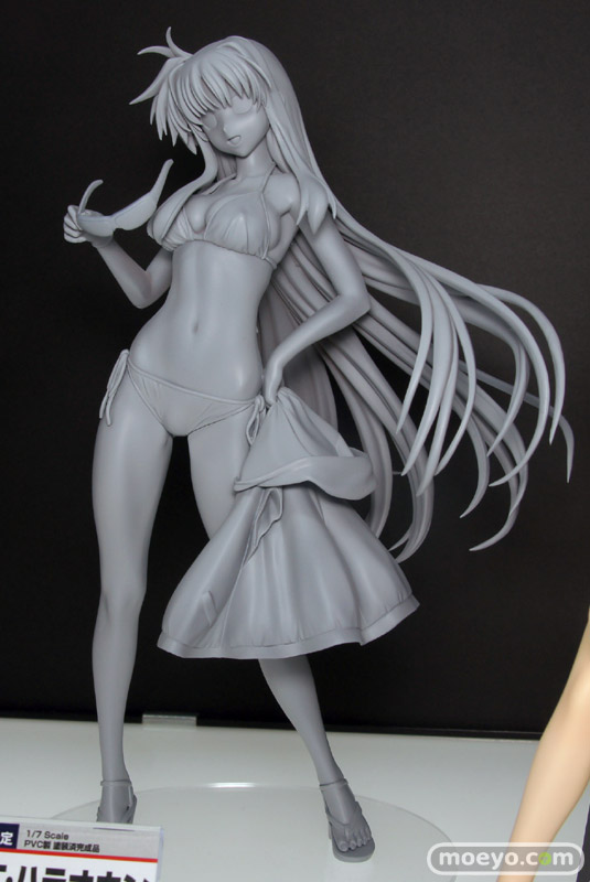 「メガホビ EXPO 2012 SPRING」の会場で、アルター「魔法少女リリカルなのはStrikers フェイト・T・ハラオウン -Summer Holiday-」の無彩色サンプルが展示。セクシーなビキニ姿と、はっきりそれと分かるむねぽちが素敵な一品です。