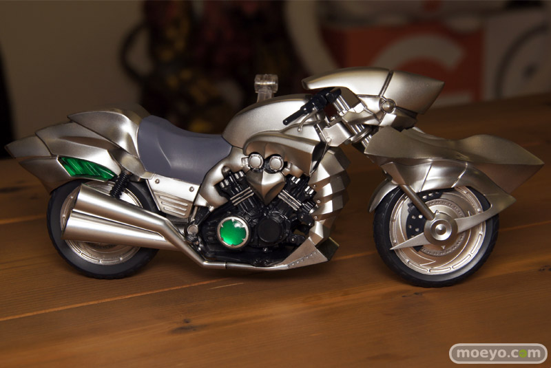 「figma」に対応した乗り物の、マックスファクトリー「Fate/Zero ex:ride Spride.05 セイバー・モータード・キュイラッシェ」の彩色サンプルを見せて頂けました。figmaサイズとは思えない、緻密なエンジン造形等、必見です!