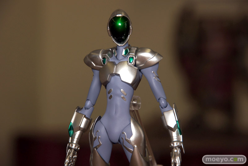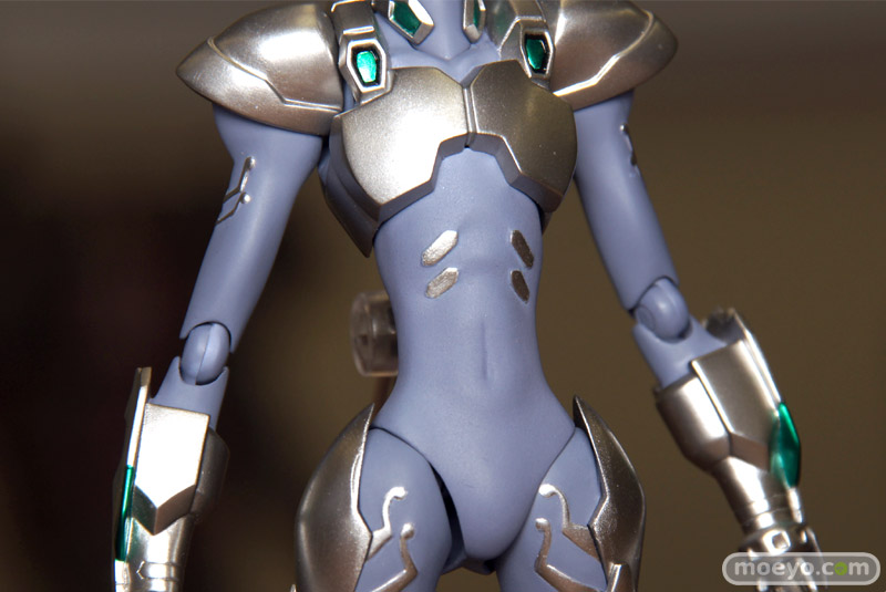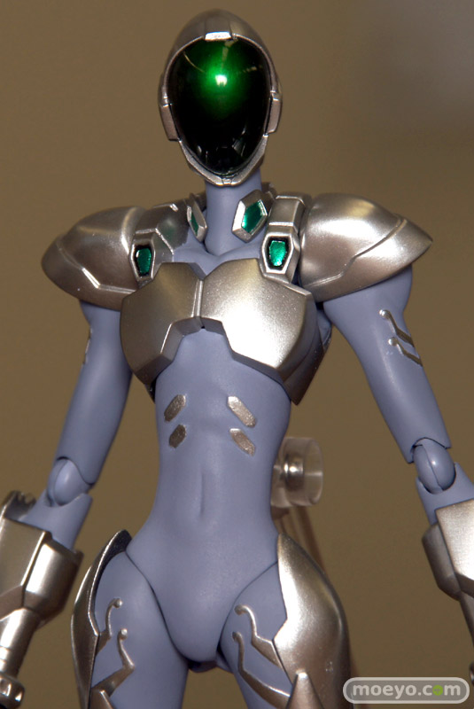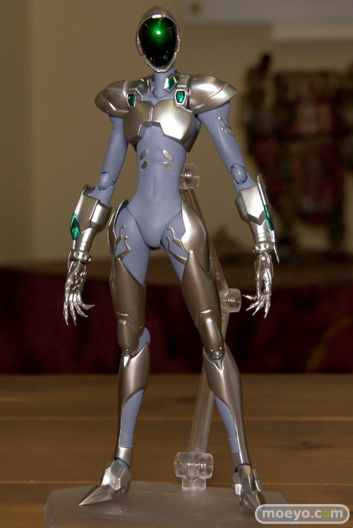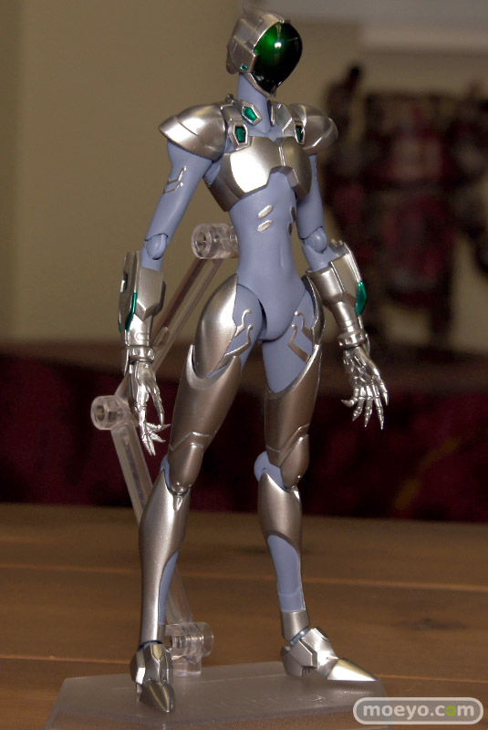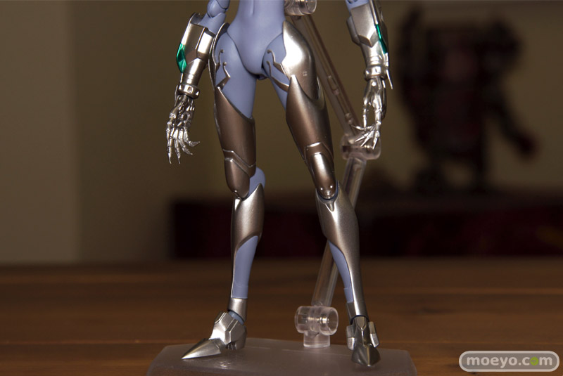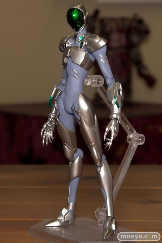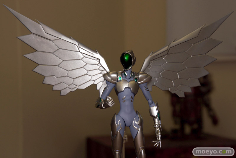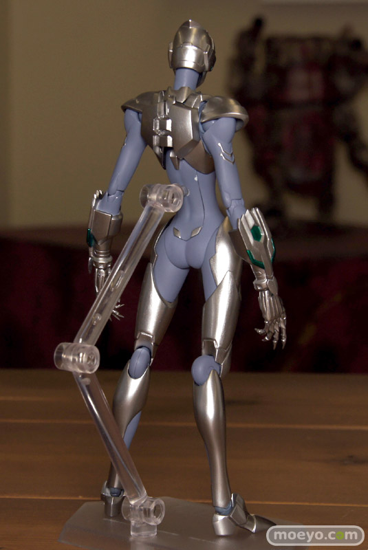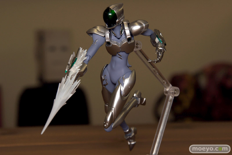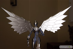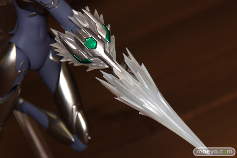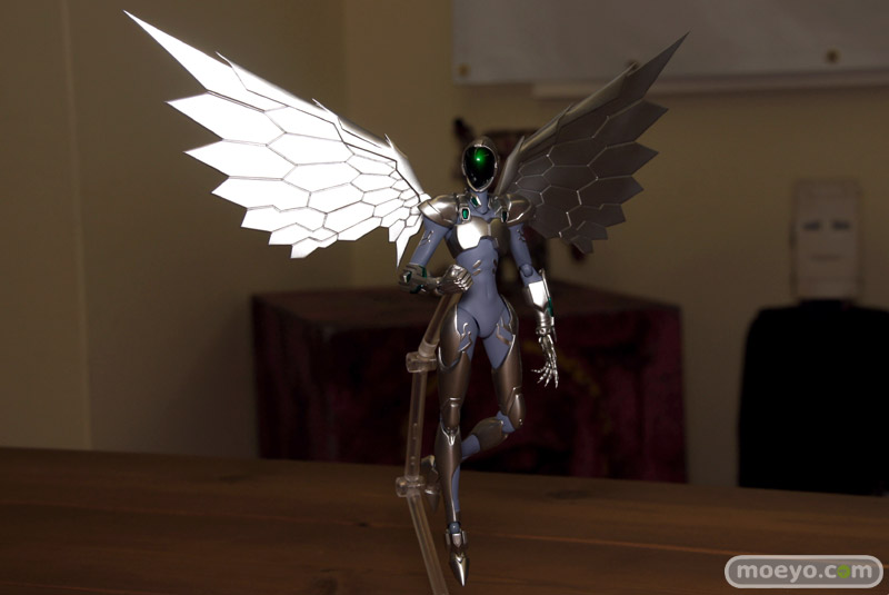 マックス「figma アクセル・ワールド シルバー・クロウ」の彩色サンプルを見せて頂きました。美しい銀色の輝きと、コスチュームの色もバッチリ再現。「シルバーウイング」の装着も可能で、必殺技を再現する為の「エフェクトパーツ」も付属。