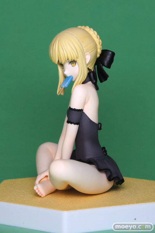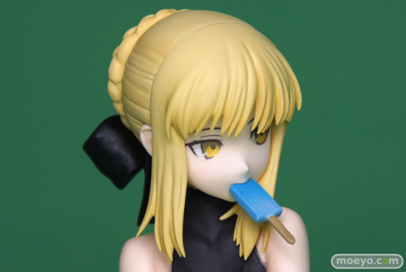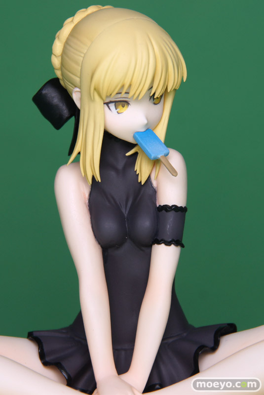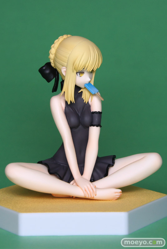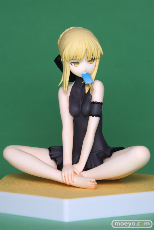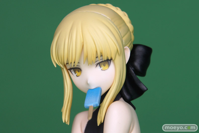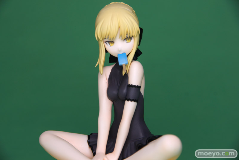 ウェーブ「BEACH QUEENS Fate/hollow ataraxia セイバーオルタ」のサンプルレビューです。武内崇氏描きおろしの、やんちゃな感じのあぐらポーズの水着姿を立体化。イラスト通りのアイスをくわえた表情の他、通常の表情も付属。