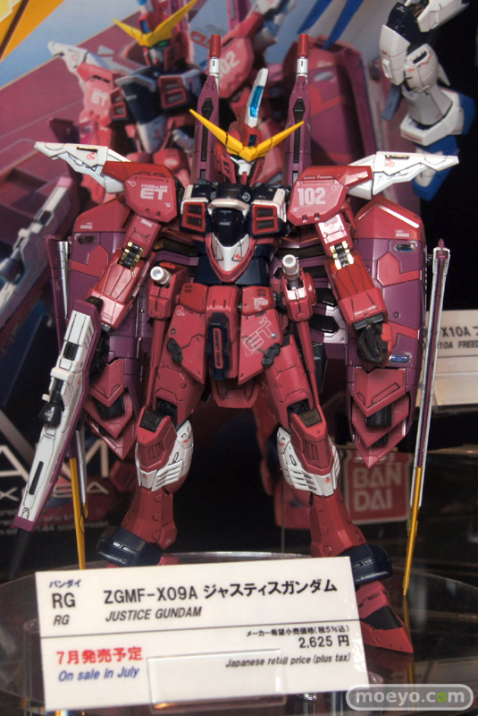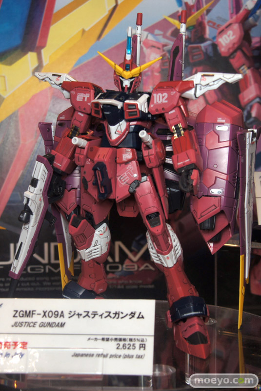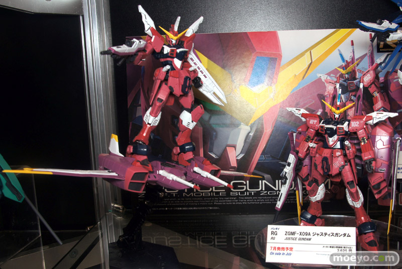 本日から6月17まで開催される「東京おもちゃショー 2012」の会場で、バンダイ「RG 1/144 ZGMF-X09A ジャスティスガンダム」の彩色サンプルが展示。リアルグレードならではの緻密な造形とマーキングが、スケール以上の存在感を放っていました。