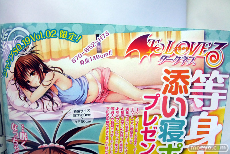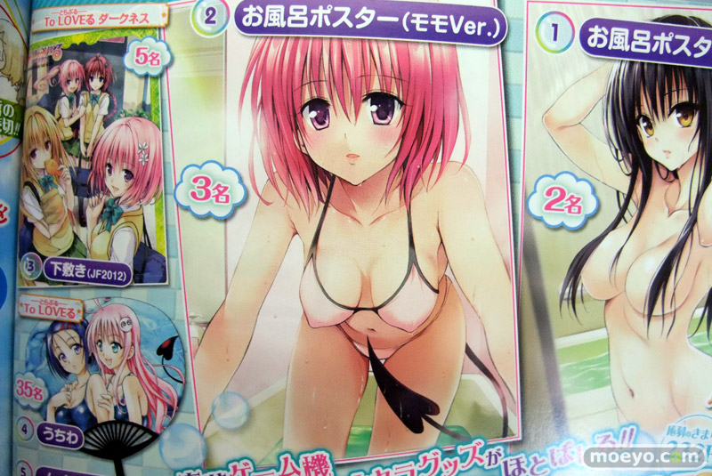 今回も、応募プレゼントにToLoveるグッズもあります。古手川の方が脱ぎっぷりは上なんですが、モモのお風呂ポスターがやけに性的な気がw 一番右は、等身大の「美柑添い寝ポスター」。パンツの見せ方にこだわりを感じますw