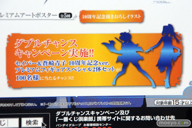 ゲーマーズ本店で開催の「TYPE-MOON 10周年記念ミュージアム in GAMERS」で展示されている「一番くじプレミアム TYPE-MOON ~10周年記念~」のサンプル展示の様子をお伝えします。画像は「A賞 セイバー 10周年記念ver.」。