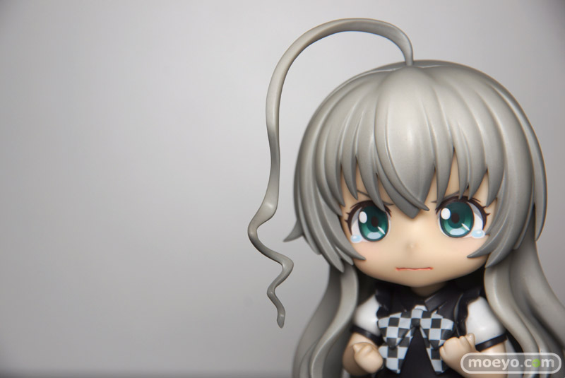 GSC「ねんどろいど ニャル子」の彩色サンプルを、移転したばかりのGSC本社で見せて頂きました。「ラブ顔」「ぐぬぬ顔」等の豊かな表情パーツに「名状しがたいバールのようなもの」なども付属し、実に多彩なポーズが可能です。