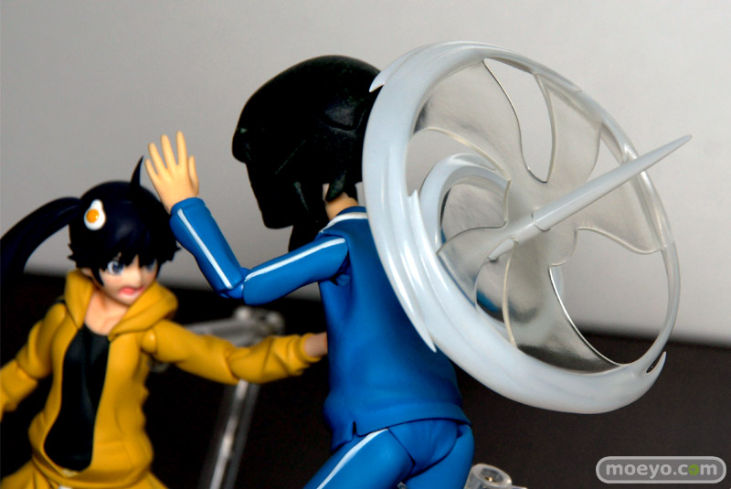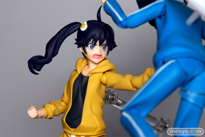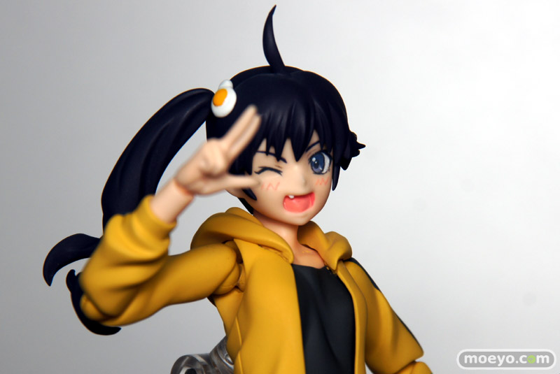 マックスファクトリー「figma 偽物語 阿良々木火憐」のデコマスサンプルを、GSC本社で見せて頂けました。靴の裏面まで細かく再現された、こだわりの作り込みで、ショートヘアやエフェクトパーツも付属し、様々なシーンを再現可能です。