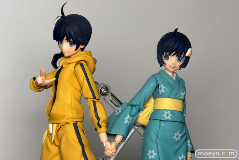 マックスファクトリー「figma 偽物語 阿良々木月火」のデコマス彩色サンプルを、GSC本社で見せて頂きました。「通常顔」「怒り顔」「むくれ顔」や、「包丁」「鍋蓋」「千枚通し」等が付属。figma火燐と手つなぎポーズもできるようです。
