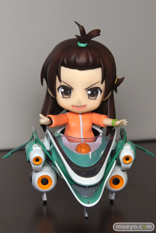グッドスマイルカンパニー「ねんどろいど 輪廻のラグランジェ 京乃まどか」の彩色サンプルです。ジャージ姿や気合結びを再現可能なほか、「鴨川エナジー」も付属。さらに、ハセガワのたまごひこーき「アウラ」にも搭乗させることが可能です。