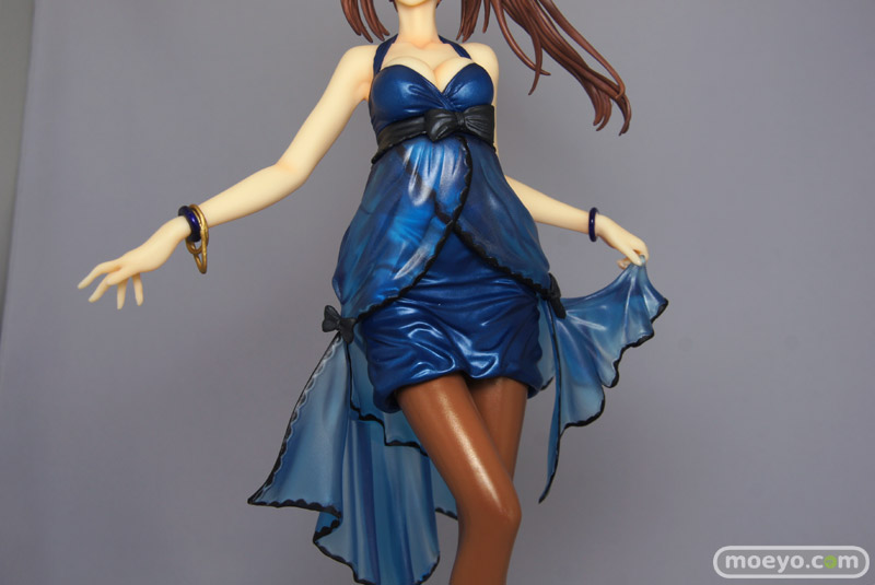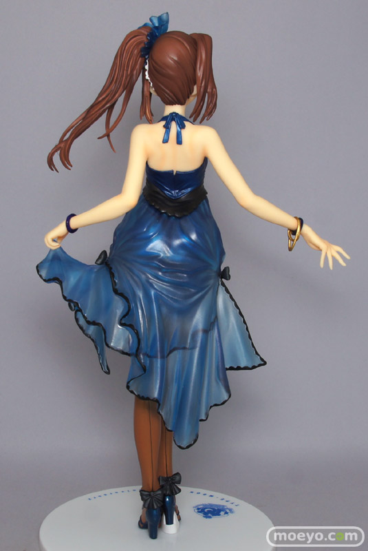 こやまひろかず氏のデザインによる鮮やかな青のイブニングドレスは、メタリックの塗装でゴージャスな生地の光沢を表現。