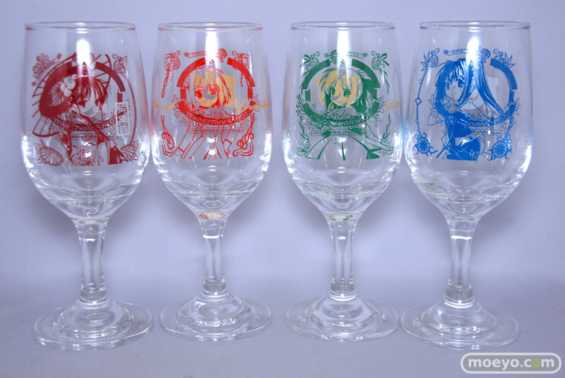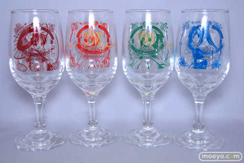 グラス用イラストを描き下ろしたのは、TYPE-MOONのBLACK氏。アニバーサリーのドレスで着飾ったアルクェイド、セイバー、式、青子がデフォルメされています。