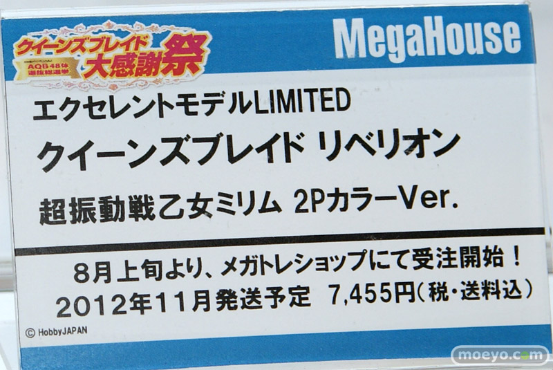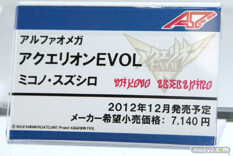 「ワンダーフェスティバル 2012[夏]」のメガハウスブースで展示されていた「アクエリオンEVOL」の新作フィギュアを中心に、ペルソナ4、男キャラもの、クイーンズブレイドの再販告知などをまとめてお伝えします。