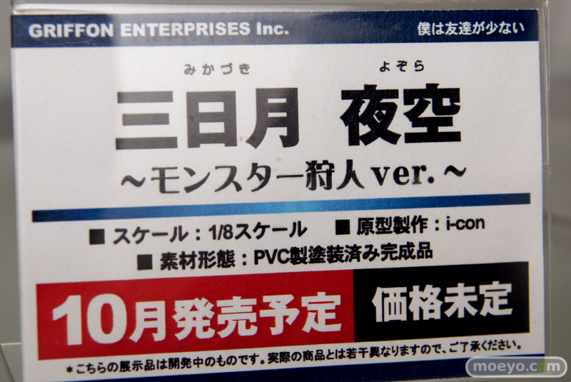 画像の「夜空 モン狩Ver.」や、「ファイターささら」「見崎鳴」、一騎当千、東方シリーズ等、「ワンダーフェスティバル 2012[夏]」のグリフォンエンタープライズブースで展示されていた、新作フィギュアの様子をまとめてお伝えします。