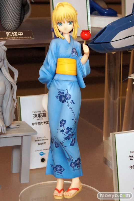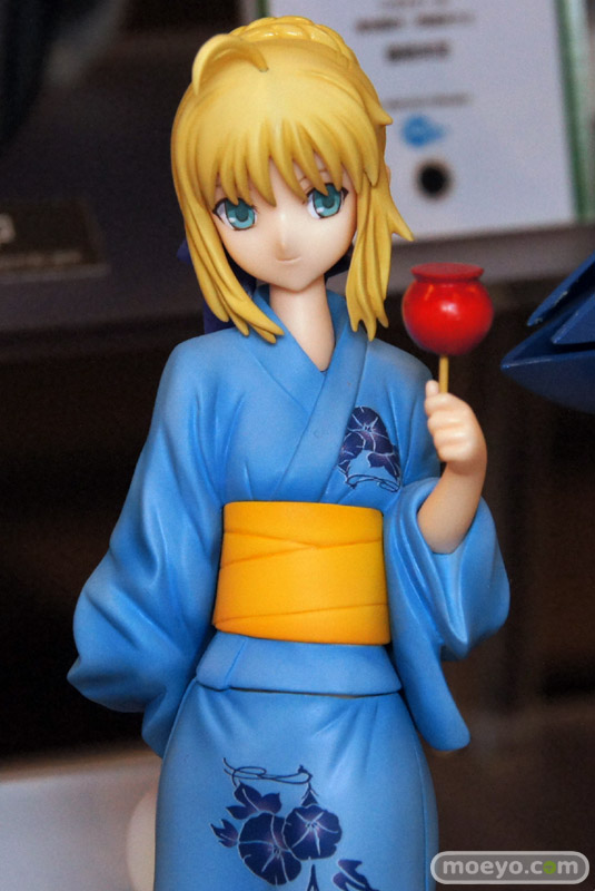 「2012夏ホビーメーカー合同商品展示会」の会場で、本日から予約開始の、FREEing「Fate/stay night セイバー 浴衣ver.」の彩色サンプルが展示。『夏らしい風情を感じる浴衣姿で立体化』というもので、体型的にもとてもマッチしています。