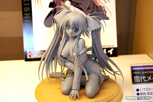 オーキッドシード「Hello,good-bye 雪代メイ」の無彩色サンプルが、「2012夏ホビーメーカー合同商品展示会」の会場で展示。おっぱい丸出しで、ストッキング脱ぎかけ。奥は影で見えなかったものの、元イラスト見る限りは「はいてない」のかも?