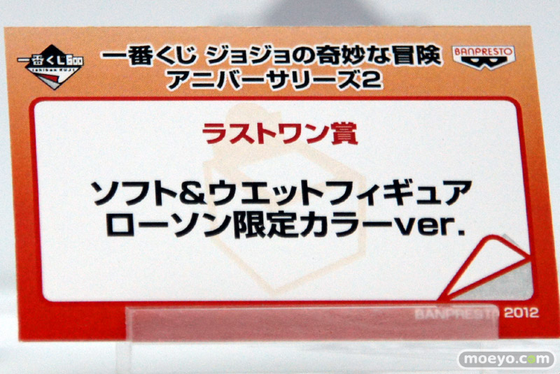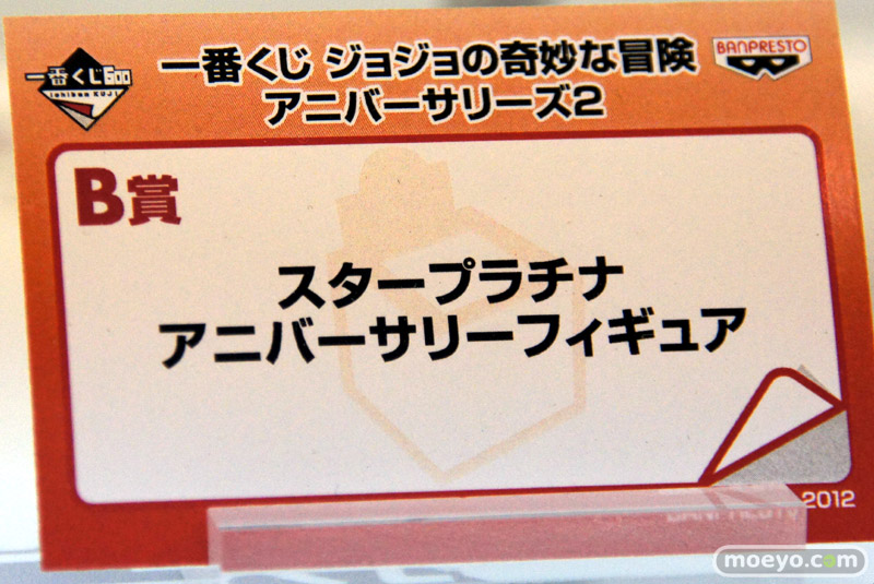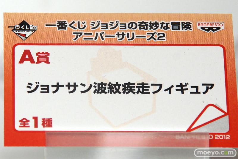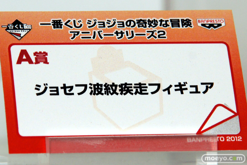 「キャラホビ2012」のバンプレストブースで、「一番くじ ジョジョの奇妙な冒険 アニバーサリーズ2」のサンプルが展示。 アニバーサリーズからちょうど1年後の2012年12月発売予定で、「ジョナサン」「ジョセフ」のフィギュア等がラインナップ。