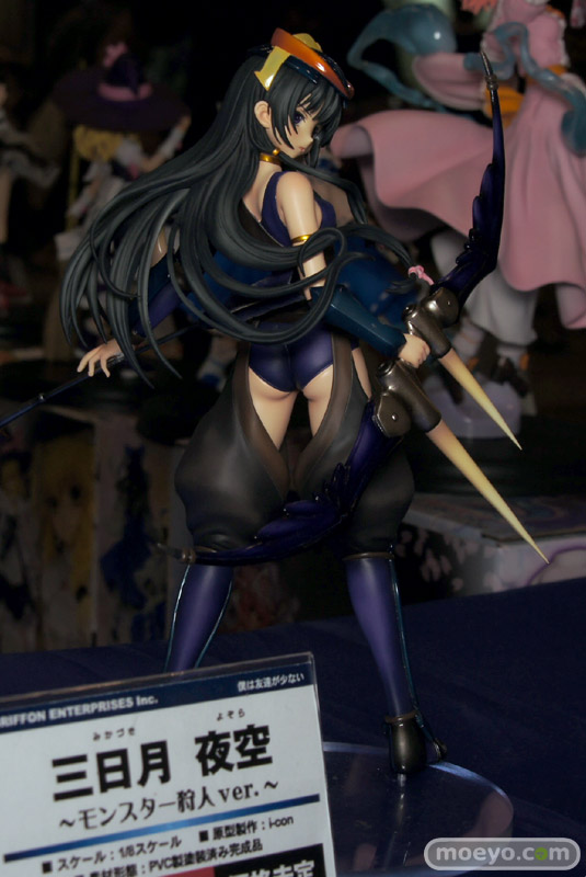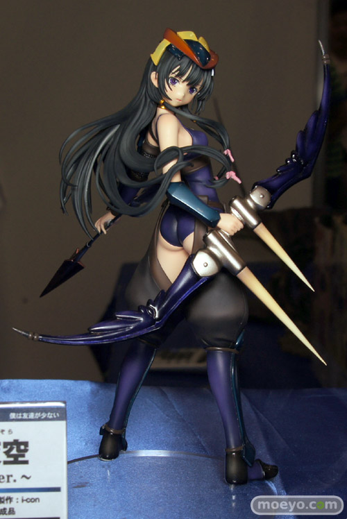 「キャラホビ2012」のグリフォンエンタープライズブースで、2012年10月発売予定の「僕は友達が少ない 三日月夜空 -モンスター狩人ver.-」の彩色サンプルが展示。ナ○ガ装備のベースをスク水にした感じの出で立ちは、なかなか良い感じです。