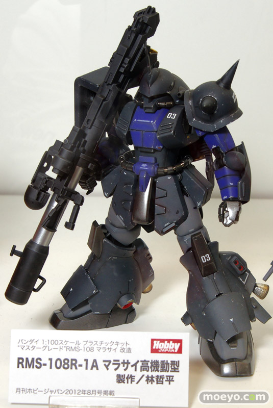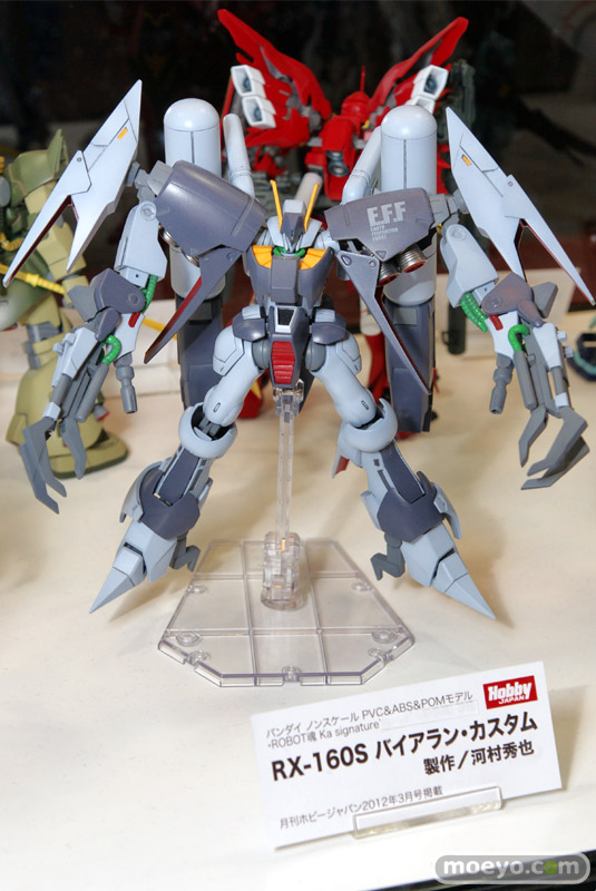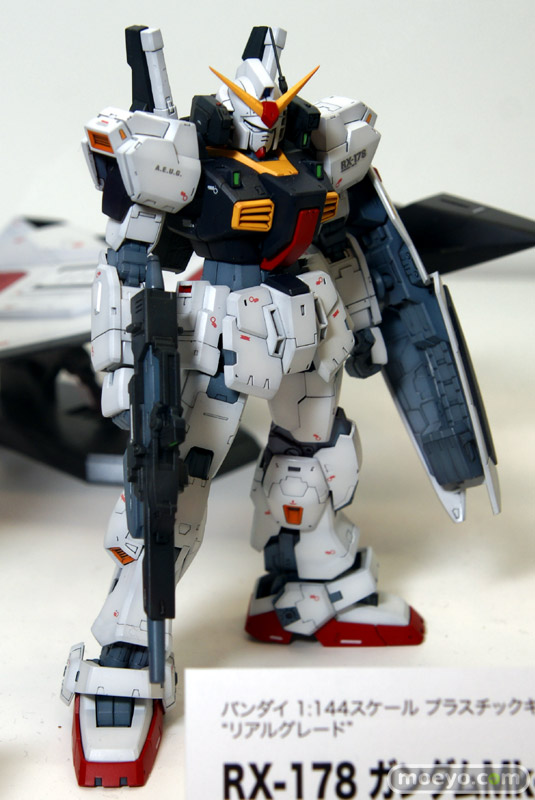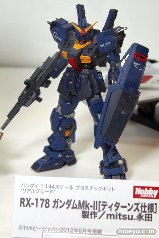 「キャラホビ2012」のホビージャパンブースでは、紙面に掲載された、数多くのガンプラの作例が所狭しと展示されていました。それら展示の様子を、数が多いので3回に分けてお伝えします。画像は「RG ガンダムMK-II ティターンズ仕様」の作例。