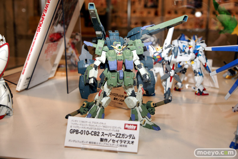 「キャラホビ2012」のホビージャパンブースでは、紙面に掲載された、数多くのガンプラの作例が所狭しと展示されていました。それら展示の様子を、数が多いので3回に分けてお伝え。画像はセイラマスオ氏制作の「スーパーZZガンダム」。