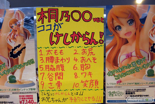 先日予約開始となった、コトブキヤ「俺の妹がこんなに可愛いわけがない 高坂桐乃 ○○なわけがないver.」の彩色サンプルが、コトブキヤ秋葉原館で展示中。原型はあのバニーシャルも手がけた橋本涼氏(PRIMAL HEART)。