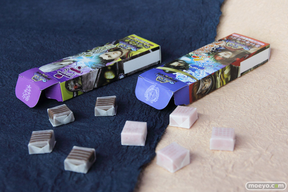 伊達政宗vs 真田幸村の表デザインに猿飛佐助と片倉小十郎を配した「蒼紅キャラメル(いちごミルク味)」と徳川家康VS 石田三成の表デザインに本多忠勝と大谷吉継を配した「関ヶ原キャラメル(チョコレート味)」。