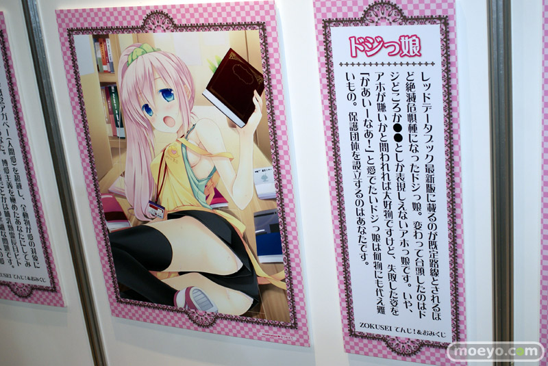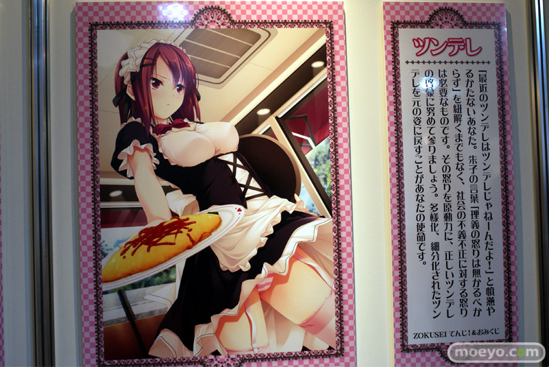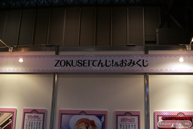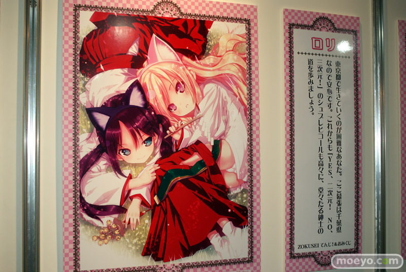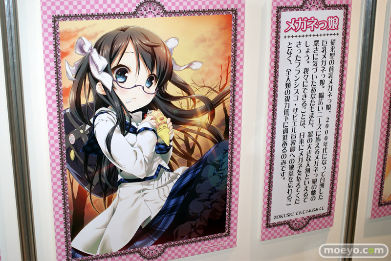「ツンデレ」「お姉さん」「ケモノっ娘」「ドジっ娘」「幼馴染み」「メガネっ娘」「ボクっ娘」「妹」「ロリ」の9種類の属性に関するイラストとおみくじ風コメントが展示されています。